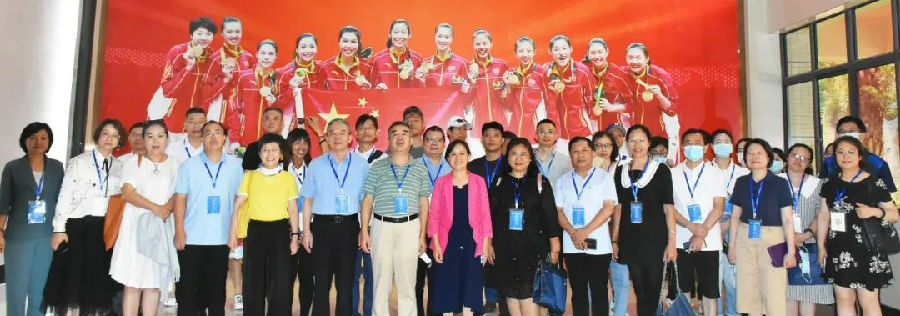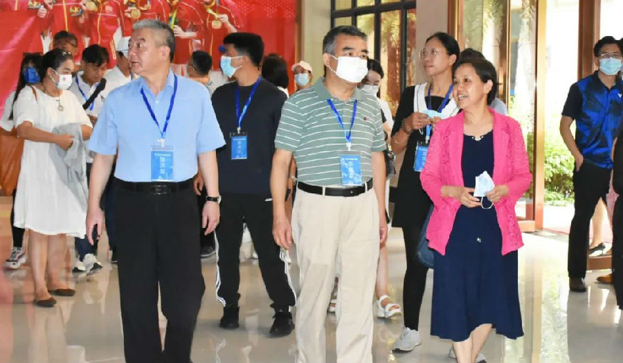 【中國(guó)職工(gōng)交流中心秘書(shū)長(cháng)王舟波(前排中)、廈門(mén)市(shì)總工(gōng)會(huì)副主席朱福志(zhì)(前排左)聽(tīng)取廈門(mén)藍(lán§)灣科(kē)技(jì)董事(shì)長(cháng)林(lín)秀芬(前排右)的(de)介紹。】